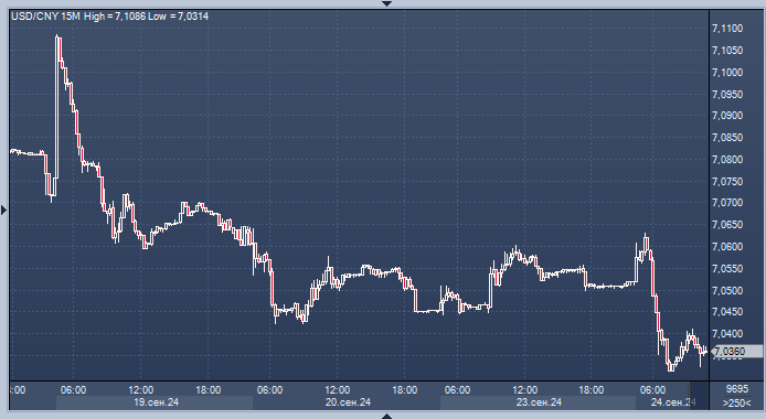 График юаня к доллару интервалами в 15 минут