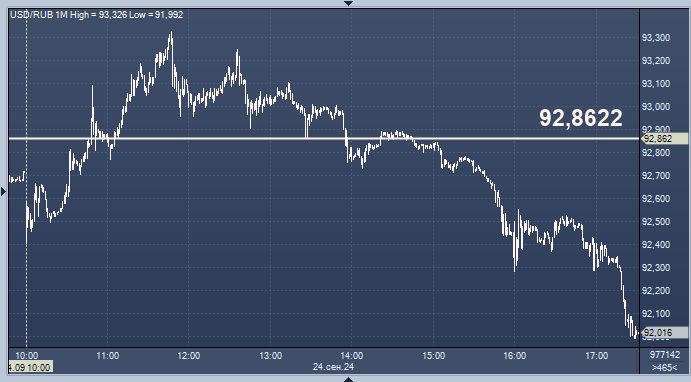 Рубль падал днем, но к вечеру все отыграл. Вероятно, к вечеру проявили активность экспортеры. Экспортёры начнут готовиться к налоговым выплатам 30 сентября, и их продажи должны поддержать рубль.