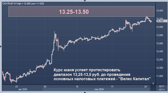Аналитик не исключает, что до проведения основных налоговых платежей в начале следующей недели курс юаня успеет еще раз протестировать диапазон 13,25-13,5 руб. При этом, если фактор поддержки для рубля в виде налоговых платежей реализуется в полной мере, юань может отступить на уровни ниже 13 руб., допускает Кравченко.