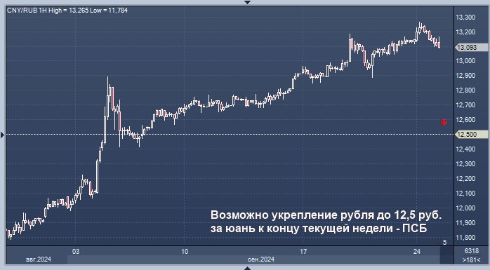 К концу недели, когда предложение валюты со стороны экспортёров достигнет пика, ожидается откат курса юаня до отметки 12,5 рублей.
