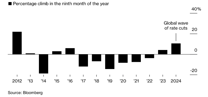 ФРС, Европейский центральный банк и Народный банк Китая снизили процентные ставки в сентябре для поддержки экономического роста. Инвесторы, ожидающие дальнейших стимулов, отреагировали на более благоприятные денежно-кредитные условия, повышая цены на все — от акций до золота.