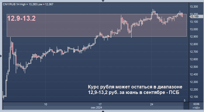 Курс валютной пары юань/рубль может остаться в диапазоне 12,9-13,2 руб. за юань в последние торговые дни текущего месяца, считает начальник отдела экономического и отраслевого анализа Промсвязьбанка (ПСБ) Евгений Локтюхов.