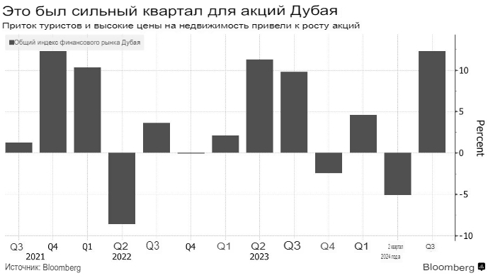 «Рост цен на недвижимость и приток туристов, а также физическое удаление от очагов конфликта в регионе привели к росту акций Дубая», — сказал Хаснаин Малик, стратег по развивающимся рынкам в Tellimer в Дубае. Тем не менее, акции Дубая теперь могут быть «более чувствительны к любым неудачам, чем к дальнейшим хорошим новостям».
