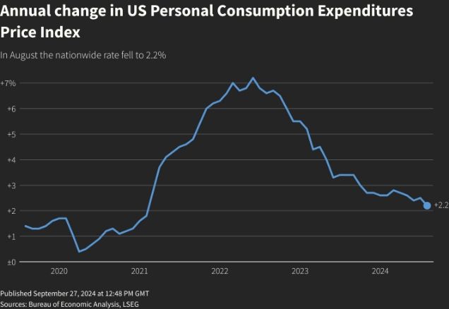 Индекс цен расходов на личное потребление (PCE) в США в августе вырос на 0,1%, совпав с ожиданиями экономистов, опрошенных агентством Reuters, после непересмотренного роста на 0,2% в июле. За 12 месяцев по август индекс цен PCE вырос на 2,2% после роста на 2,5% в июле.