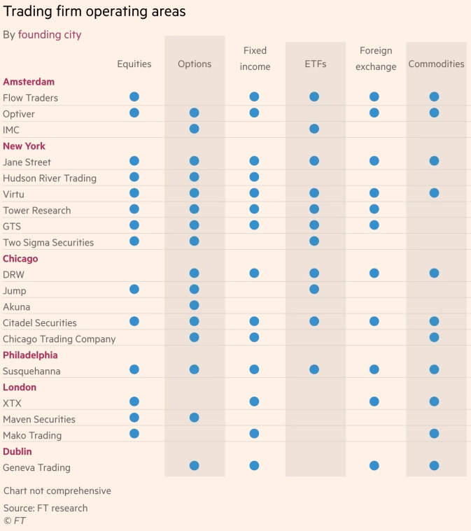 Эта компания, основанная на рубеже тысячелетий, входит в горстку очень секретных трейдинговых фирм, среди которых также Citadel Securities, Susquehanna International Group, XTX Markets и DRW, которые воспользовались электронизацией финансовых рынков, чтобы отвоевать долю рынка у менее проворных и более жестко регулируемых банковских лидеров, и в процессе изменили торговый ландшафт Уолл-стрит.