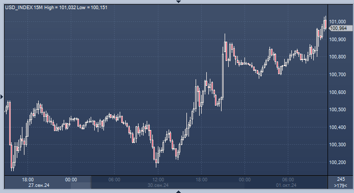 Индекс доллара вырос на 0,1% до 100,87 по состоянию на 04:03 по Гринвичу после роста на 0,3% в понедельник, когда он зафиксировал третье ежемесячное снижение подряд. В сентябре падение составило почти 1%.
