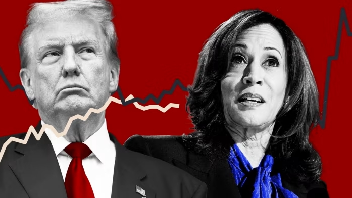 Жесткая гонка означает, что торговля волатильностью рассматривается как более безопасная ставка, чем попытки угадать, какие акции или секторы выиграют от победы Дональда Трампа или Камалы Харрис © FT montage/Bloomberg/AP