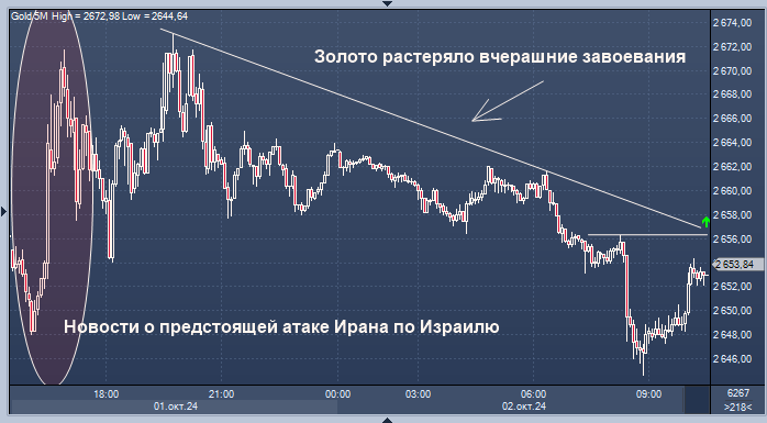 По состоянию на 06:48 по Гринвичу спотовые цены на золото упали на 0,5%, достигнув отметки в 2649,17 долларов за унцию. Фьючерсы на золото в США снизились на 0,7%, до 2670,30 долларов.