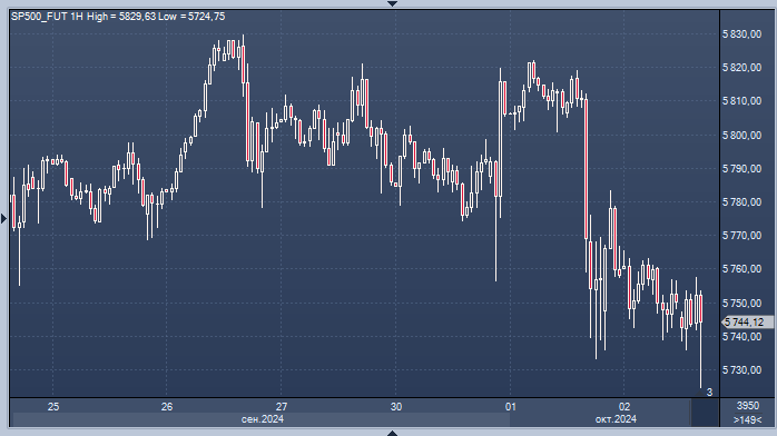 S&P 500 снизился на 0,4%. Доходность десятилетних казначейских облигаций США достигла 3,81%, после того как во вторник она опустилась до минимума в 3,69%. Инвесторы искали активы-убежища. Доллар вырос до максимального значения за сессию после публикации данных по рынку труда.