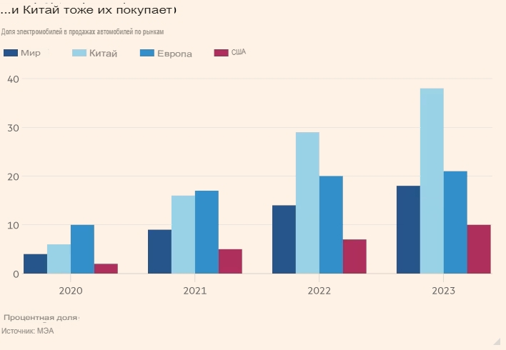 Соблазн доступа на рынок США, посредством которого Вашингтон традиционно осуществляет контроль над торговой и технологической политикой других стран, слабее, чем должен быть. Американские потребительские предпочтения и доминирование автопроизводителей из Детройта привели к тому, что рынок электромобилей в США оказался крайне неразвитым. В 2023 году доля электромобилей в общем объёме продаж составила 10 процентов по сравнению с 38 процентами в Китае и 21 процентом в ЕС, и даже налоговые льготы на электромобили в Законе Байдена о снижении инфляции пока имели лишь ограниченный эффект.