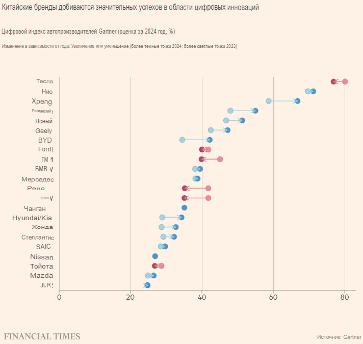 Превосходство Китая в области электромобилей необычайно велико — Китай производит и владеет более чем половиной мировых электромобилей, включая подключаемые гибриды, — но также, в отличие от предыдущих поколений потребительских товаров (электроника, одежда), китайские бренды доминируют на рынке. Спорным является то, что это связано с десятилетиями государственных субсидий. А вот что не так, так это то, что китайские компании, выходящие из беспощадного (и перенасыщенного) внутреннего рынка, сами по себе являются яростно конкурентоспособными на мировом рынке, как и иностранные компании, которые всё больше экспортируют со своих китайских баз. И китайские бренды лидируют в разработке программного обеспечения для повышения производительности своих автомобилей.