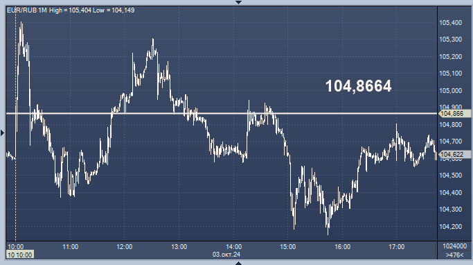 - 104,8664 рубля за 1 евро