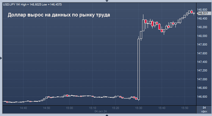 Индекс доллара поднялся на 0,4%, достигнув сессионного максимума. Рост индекса наблюдается пятый день подряд и ускорился после того, как данные о занятости в несельскохозяйственном секторе США за сентябрь оказались выше ожидаемых значений.