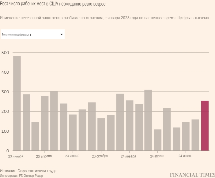 В сентябре экономика США пополнилась 254 000 рабочих мест, что значительно превзошло ожидания, и стало признаком устойчивости рынка труда, в то время как Федеральная резервная система США рассматривает вопрос о том, как быстро снижать процентные ставки.
