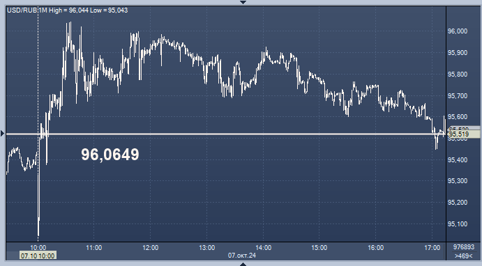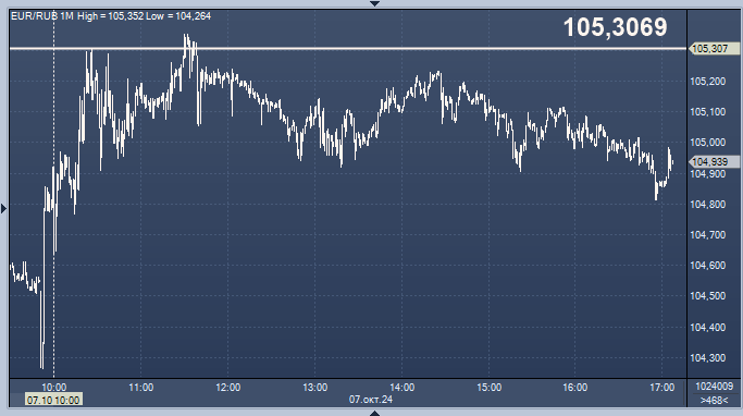 Китайский юань уверенно растет на Московской бирже в понедельник днем. Рубль дешевеет, обновил в ходе торгов минимальное значение с середины октября прошлого года. С 1 по 7 октября закрыты биржи Китая в связи с праздниками по случаю Дня образования КНР, что оказывает дополнительное давление на рубль в паре с китайской валютой, пишет Интерфакс. Торги долларом и евро не проводятся на Московской бирже с 13 июня из-за санкций. В связи с этим наиболее подходящими ориентирами колебаний курса (в том числе для внебиржевого рынка) являются котировки однодневного фьючерсного контракта с автопролонгацией на курс "доллар США - российский рубль" (USDRUBF) и такого же контракта на курс "евро - российский рубль" (EURRUBF).