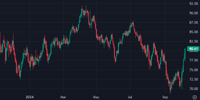 Котировки нефти Brent на ICE превысили $80 за баррель впервые с августа. Это стало следствием эскалации напряженности на Ближнем Востоке, и ситуация может усугубиться еще больше, если Израиль атакует нефтяную инфраструктуру Ирана.