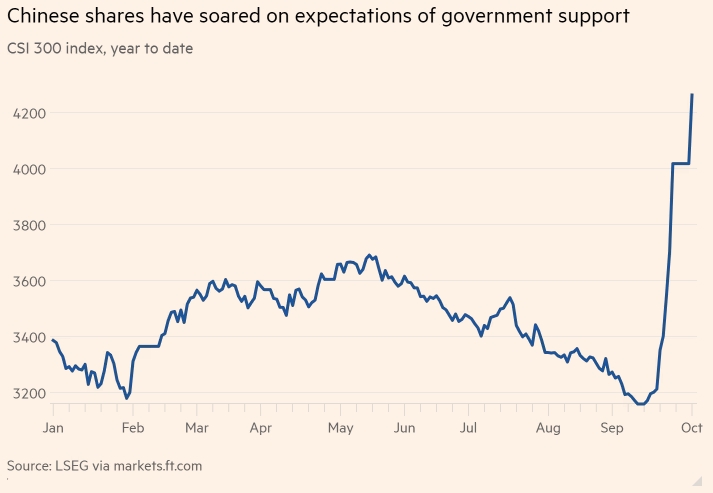 Рыночные движения вторника произошли после того, как такие организации, как Goldman Sachs, Citi и HSBC, повысили свои прогнозы по китайским акциям. За последний месяц индекс CSI 300 вырос более чем на 33%.