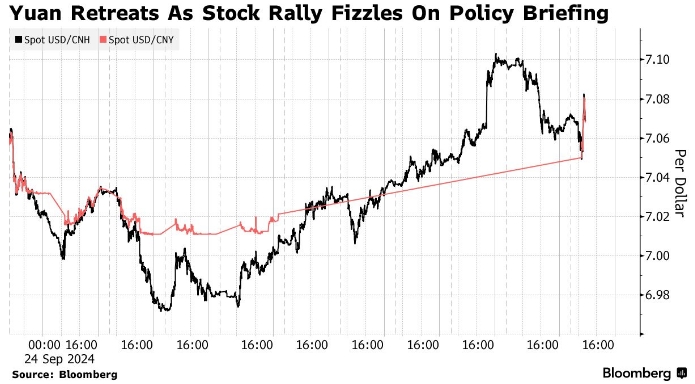 Офшорный юань свел на нет утренние достижения, а котировки на внутреннем рынке продолжили снижение во время брифинга NDRC. Индекс доллара Bloomberg Asia упал на 0,5%, что является максимальным показателем за месяц.