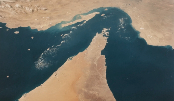 Панорама, запечатлённая с борта космического корабля «Колумбия» во время миссии STS-52, состоявшейся с 22 октября по 1 ноября 1992 года, демонстрирует Ормузский пролив, соединяющий Оманский залив с Персидским заливом. На заднем плане видны горы Загрос и остров Кешм, а на переднем плане — территории Омана, Маската и Объединённых Арабских Эмиратов. Space Frontiers | Archive Photos | Getty Images