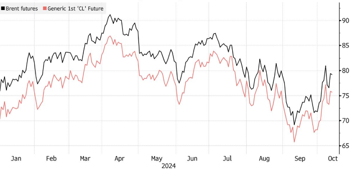 Нефть марки Brent держится вблизи $79 за баррель, что более чем на 1% выше, чем в начале недели, а West Texas Intermediate продается по $76. Кабинет безопасности премьер-министра Израиля Биньямина Нетаньяху собрался в четверг, чтобы обсудить, как и когда страна ответит на недавнюю ракетную атаку Ирана.