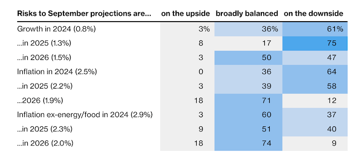 Прогнозы ЕЦБ в прошлом месяце показали, что целевой показатель инфляции будет достигнут в последнем квартале 2025 года. С тех пор, по словам экономистов, начали накапливаться риски снижения. Небольшое большинство — 55% — считает, что недостижение этого уровня в среднесрочной перспективе теперь представляет большую опасность, чем его превышение.
