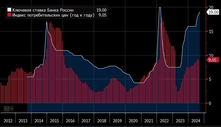 Также авторы предлагают взглянуть на инфляцию через ключевую ставку ЦБ РФ, при которой уровень инфляции соответствует реальной процентной ставке 2020 года. Этот показатель с осени 2023 года расходится с официальной инфляцией в 9% и составляет около 16%.