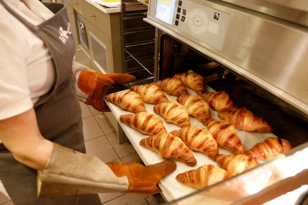 Сотрудник достает из духовки противень с круассанами в сети ресторанов La Croissanterie в Париже, Франция, 7 сентября 2017 г. REUTERS/Charles Platiau