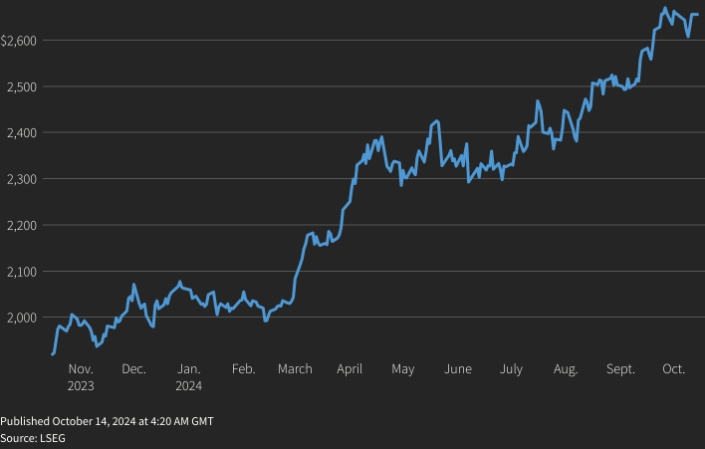 Спотовое золото выросло на 0,1% до $2 658,67, как ранее в ходе сессии цена достигала самого высокого значения с 4 октября в $2 666,72. Фьючерсы на золото в США остались на уровне $2 676.