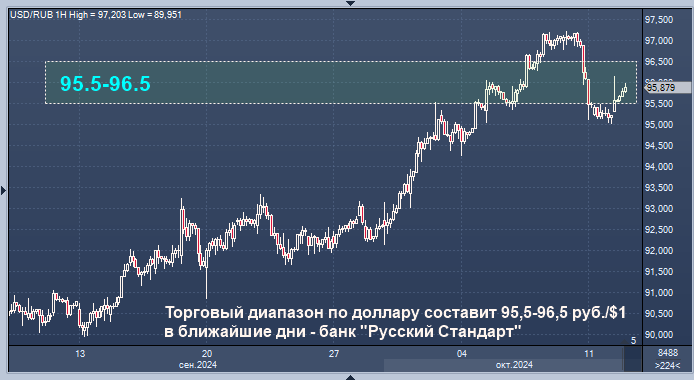 Торговый диапазон по доллару, скорее всего, составит в ближайшие дни 95,5-96,6 руб./$1, по евро - 104,5-105,5 руб./EUR1, полагает директор департамента операций на финансовых рынках банка "Русский Стандарт" Максим Тимошенко. По мнению эксперта, на предстоящей неделе основное влияние на стоимость валют будет оказывать развитие ситуации в ближневосточном регионе, обострение которой уже сказалось в значительной мере на курсах на минувшей неделе.