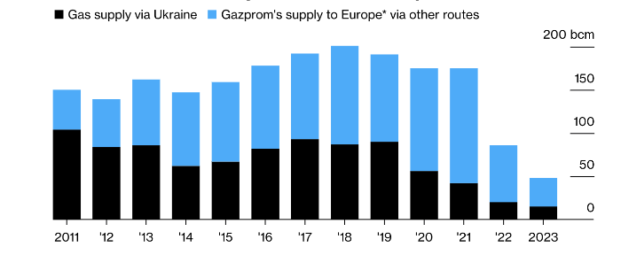 Европейские чиновники считают, что региону необходимо продолжать усилия по отказу от российского ископаемого топлива. Делать это они собираются путем сокращения потребления газа и более быстрого наращивания мощностей возобновляемых источников энергии. Украинский трубопровод — один из двух оставшихся маршрутов, по которым российский трубопроводный газ попадает в Европу. Но экспорт сжиженного природного газа продолжает поступать на европейские берега в изобилии.