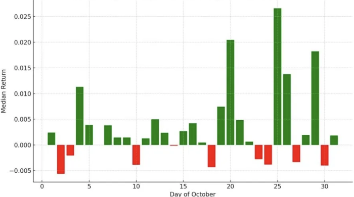 «Исторические данные показывают, что сезонная сила октября на криптовалютных рынках обычно приходится на вторую половину месяца», — написал в заметке Шон Фаррелл, глава стратегии по цифровым активам в Fundstrat Global Advisors LLC.