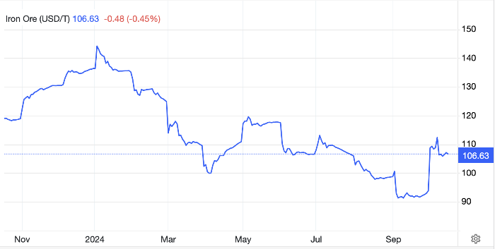 Цены на железную руду упали более чем на 20% в этом году, поскольку замедление экономики Китая, особенно затяжной спад в сфере недвижимости, вынудили металлургические заводы сократить производство стали. В последнее время официальные лица в Пекине сигнализировали о желании положить конец экономическим трудностям, развернув ряд стимулирующих мер от монетарного до регуляторного смягчения. Это поддержало рынок железной руды, хотя опасения по поводу влияния растущих поставок сохраняются.