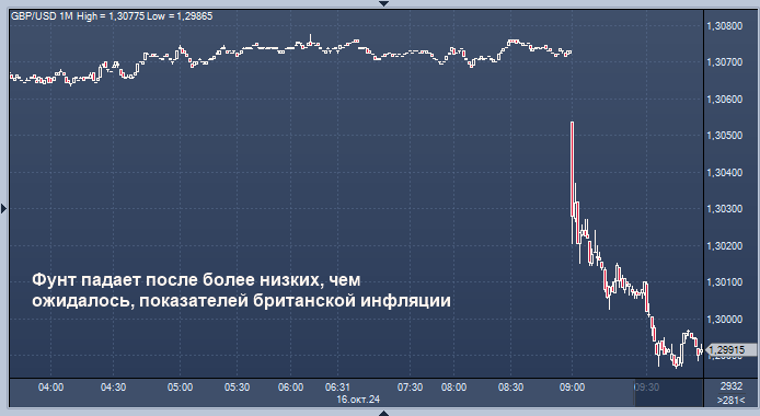 Фунт стерлингов упал в среду после данных, показавших, что британская инфляция в сентябре замедлилась сильнее, чем ожидалось, что облегчит Банку Англии дальнейшее снижение процентных ставок в этом году.