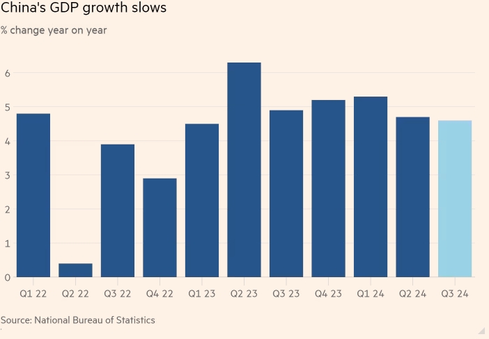 Более медленный рост указывает на необходимость дополнительной поддержки со стороны Пекина. В конце сентября правительство объявило о крупнейшем денежно-кредитном стимулировании со времён пандемии. За этим последовало обещание крупных бюджетных расходов.