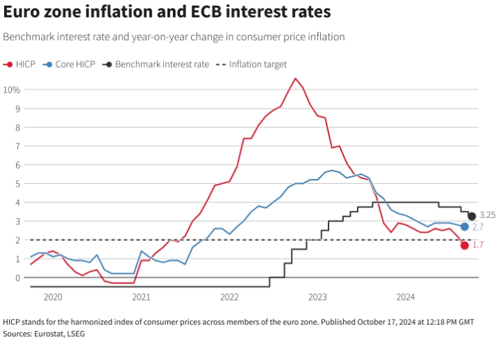 Ухудшение экономических перспектив и признаки того, что инфляция находится под контролем, побудили ЕЦБ снизить ставку по депозитам на 25 базисных пунктов (б.п.) до 3,25% после сентябрьского решения. Это стало первым последовательным снижением ставки с 2011 года.