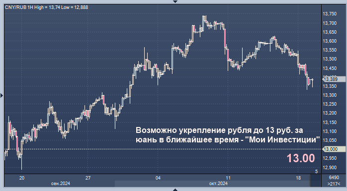 Курс валютной пары юань/рубль может скорректироваться примерно до уровня 13 руб. за юань в ближайшее время на дивидендных и налоговых выплатах, а также ожидаемом повышении ключевой ставки ЦБ РФ, считают аналитики телеграм-канала "Мои Инвестиции".