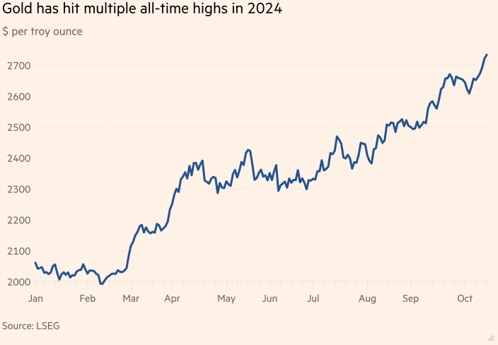 Война на Ближнем Востоке в сочетании с неопределенностью относительно исхода президентских выборов в США, которые состоятся в следующем месяце, усилили привлекательность золота как актива-убежища.