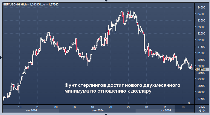 По данным агентства Reuters, на момент написания этого текста, 22 октября 2024 года в 14:15 по московскому времени, курс фунта стерлингов по отношению к доллару США достиг нового минимума за последние два месяца.
