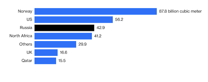 Доля российского природного газа в общем импорте газа в Европейский Союз. Источник: Bloomberg