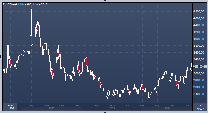 Фьючерсы на цинк торговались на 3,6% выше точки начала сессии по состоянию на 14:46 в Шанхае. Среди других металлов алюминий подорожал на 1,5% до 2 710 долларов за тонну, самого высокого уровня с мая, а медь выросла на 0,9%.