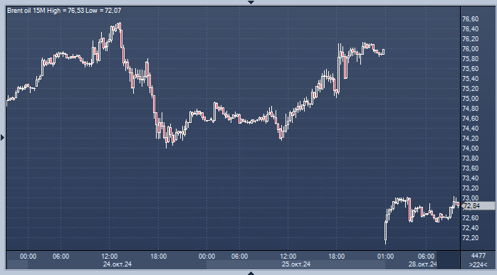 График нефти марки Brent интервалами в 15 минут