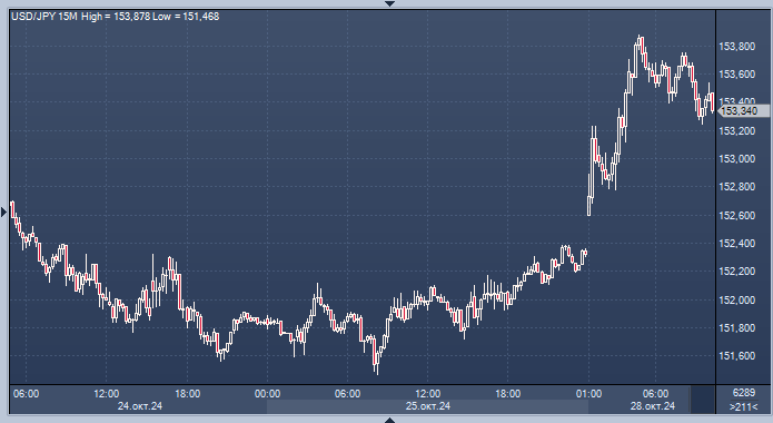 На азиатской сессии иена ослабла по отношению к доллару до 153,88 и к евро до 166,06. Это самые низкие показатели с конца июля. В последний раз иена упала примерно на 0,7% по отношению к доллару, что является самым значительным падением с октября среди валют G10.
