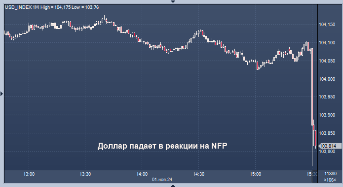 После публикации отчёта о занятости за октябрь доходность государственных облигаций США упала. Это отражает снижение ожиданий процентных ставок.