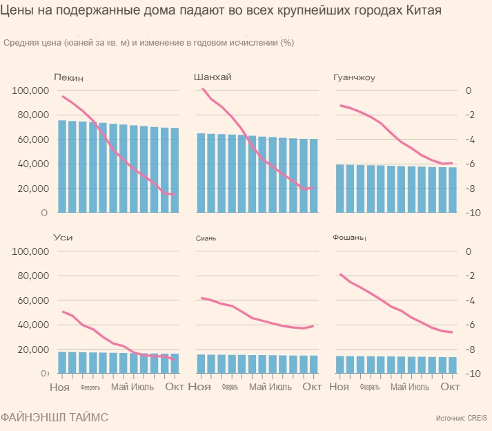 В Уси, что расположен на западе от Шанхая, наблюдается тенденция к замене старых домов на новые. В Гуанчжоу, который находится на юге Китая, и в Пекине, столице страны, покупатели, которые приобретают жильё впервые, пользуются снижением цен, чтобы купить вторичное жильё.