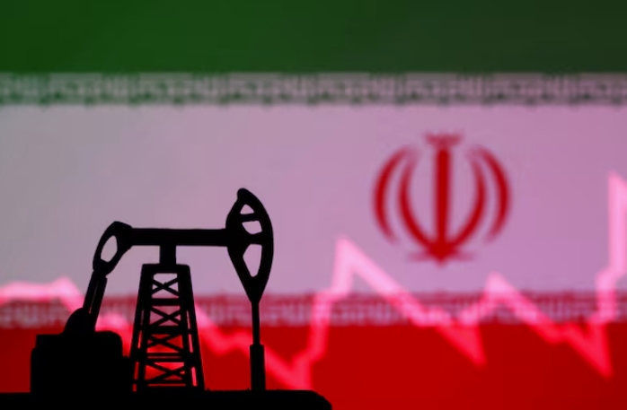 На этой иллюстрации, сделанной 9 октября 2023 года, можно увидеть иранский флаг с графиком акций и миниатюрную модель нефтяного насоса. REUTERS/Dado Ruvic