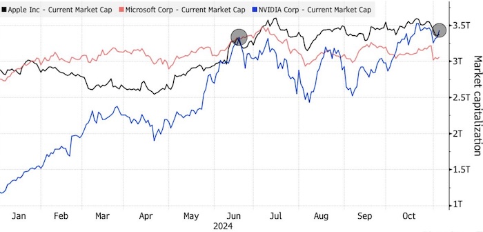 Производитель чипов составляет 7% веса индекса S&P 500 и отвечает примерно за четверть его роста на 21% в этом году. Ранее Nvidia закрыла торги с титулом крупнейшей компании в июне, хотя удерживала рекорд всего один день.