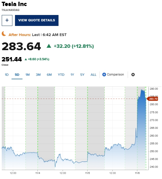На премаркете акции Tesla выросли почти на 15%. Бывший президент побеждает своего соперника Камалу Харрис, которая была кандидатом от Демократической партии.