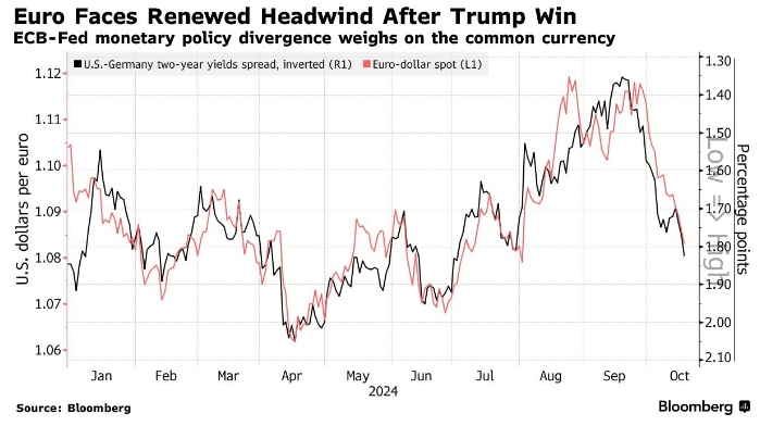 Валютные трейдеры теряют интерес к евро, поскольку победа Дональда Трампа на президентских выборах в США повышает вероятность агрессивного снижения процентных ставок в Европе. Это может привести к тому, что курс единой валюты сравняется с курсом доллара.