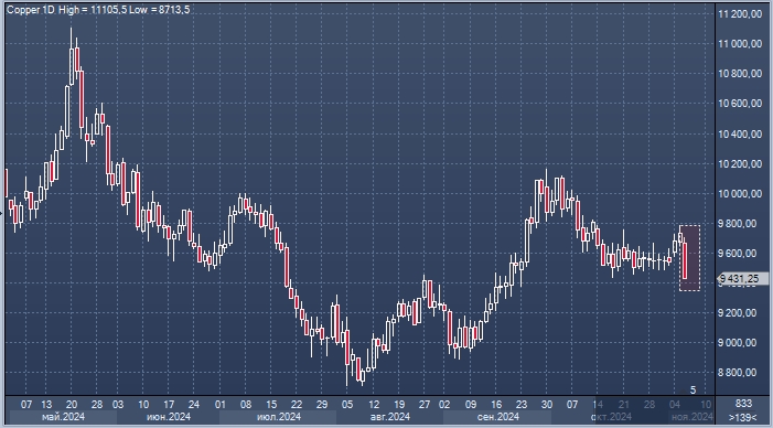 Спотовая цена на медь на COMEX упала более чем на 4% до уровня ниже 4,30 доллара за фунт в ходе ранних утренних торгов 6 ноября, поскольку рынок отреагировал на то, что может означать для рынков металлов второй президентский срок Трампа.