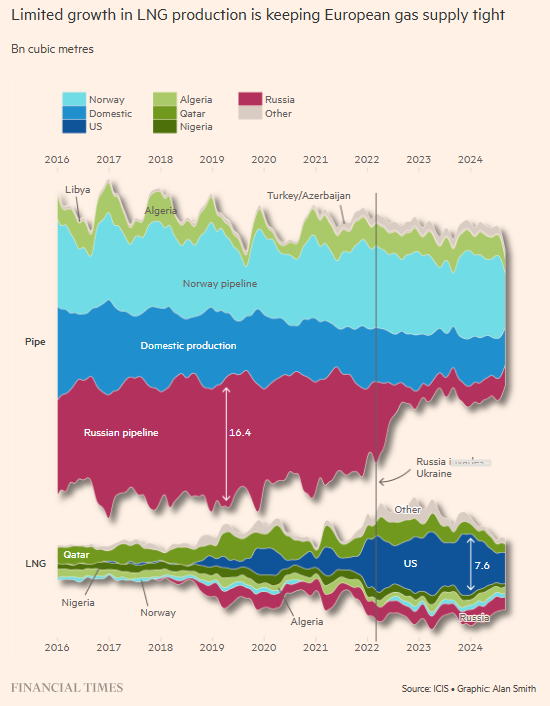 Международное энергетическое агентство в своём последнем отчёте о мировых рынках газа предупреждает, что мировой баланс газа «остаётся хрупким, поскольку ограниченный рост производства СПГ сдерживает предложение», и что «рынки остаются чувствительными к неожиданным изменениям предложения или спроса».
